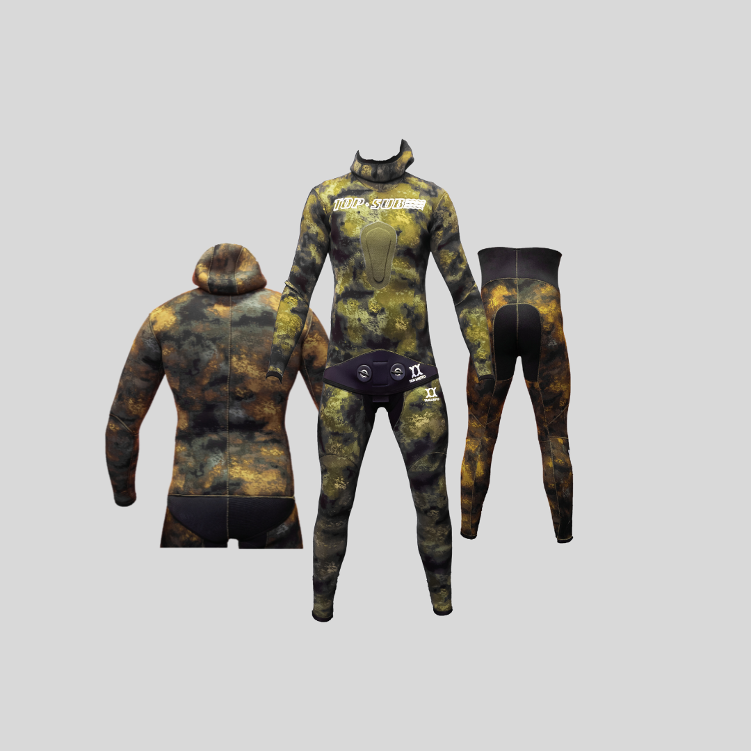 Neoprene Yamamoto 38 foderato esternamente per una maggiore resistenza all’usura dovuta al contatto con i fondali marini. Spaccato (microporoso) interno.