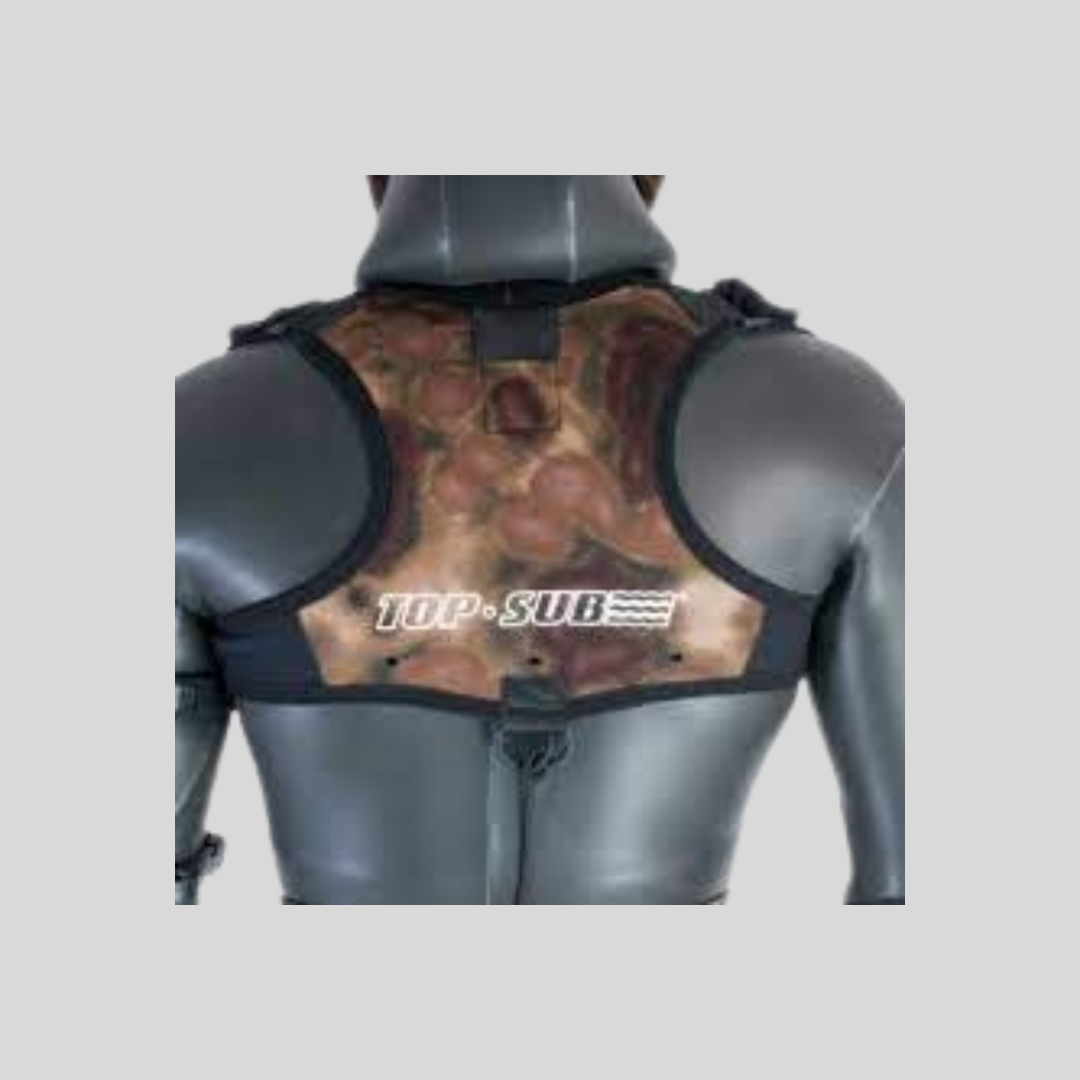 Comodo schienalino a velcro da massimo 4 kg di piombo da cintura, applicabile direttamente sulle mute predisposte o, con l’ aggiunta degli appositi spallacci regolabili, su tutte le mute.